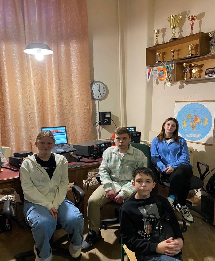 На фото молодіжна команда UR5W. Зліва направо Соломія, Юрко, Валентина. В нижньому ряду Макс Рожек-US-77-W/ Нажаль, на фото відсутня капітан Анна - UR2WAA, яка на той проміжок часу пішла відпочивати після своєї напруженої зміни.