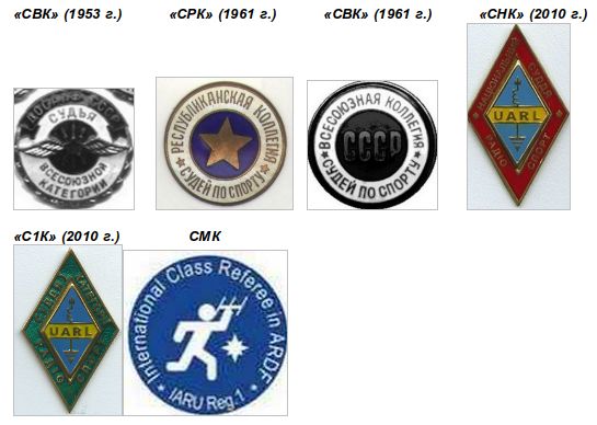 1.«Судья по спорту Всесоюзной категории (радиоспорт)» - «СВК» [присваивалось «Госкомспорта СССР» и решением «Министерства по делам семьи, молодежи и спорта Украины» (Приказ №2443 от 01.12.1992) были перерегистрированы на звание «Нацiональний суддя зi спорту (радiоспорт)»]: