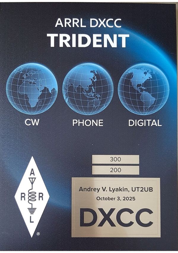 Від щирого серця вітаю Андрія Лякіна UT2UB з отриманням першої в Україні плакетки DXCC Trident 300 та бажаю подальших творчих успіхів!