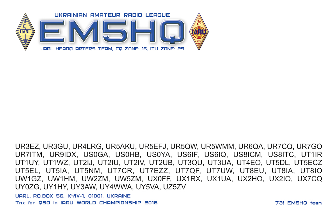 QSL карточка EM5HQ 2016Приветствую всех! Представлена QSL карточка EM5HQ 2016. --