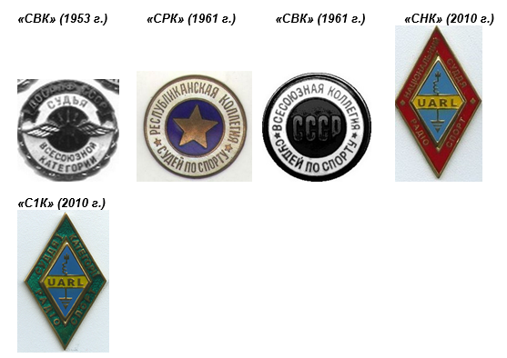 1.«Судья по спорту Всесоюзной категории (радиоспорт)» - «СВК» [присваивалось «Госкомспорта СССР» и решением «Министерства по делам семьи, молодежи и спорта Украины» (Приказ №2443 от 01.12.1992) были перерегистрированы на звание «Нацiональний суддя зi спорту (радiоспорт)»]: